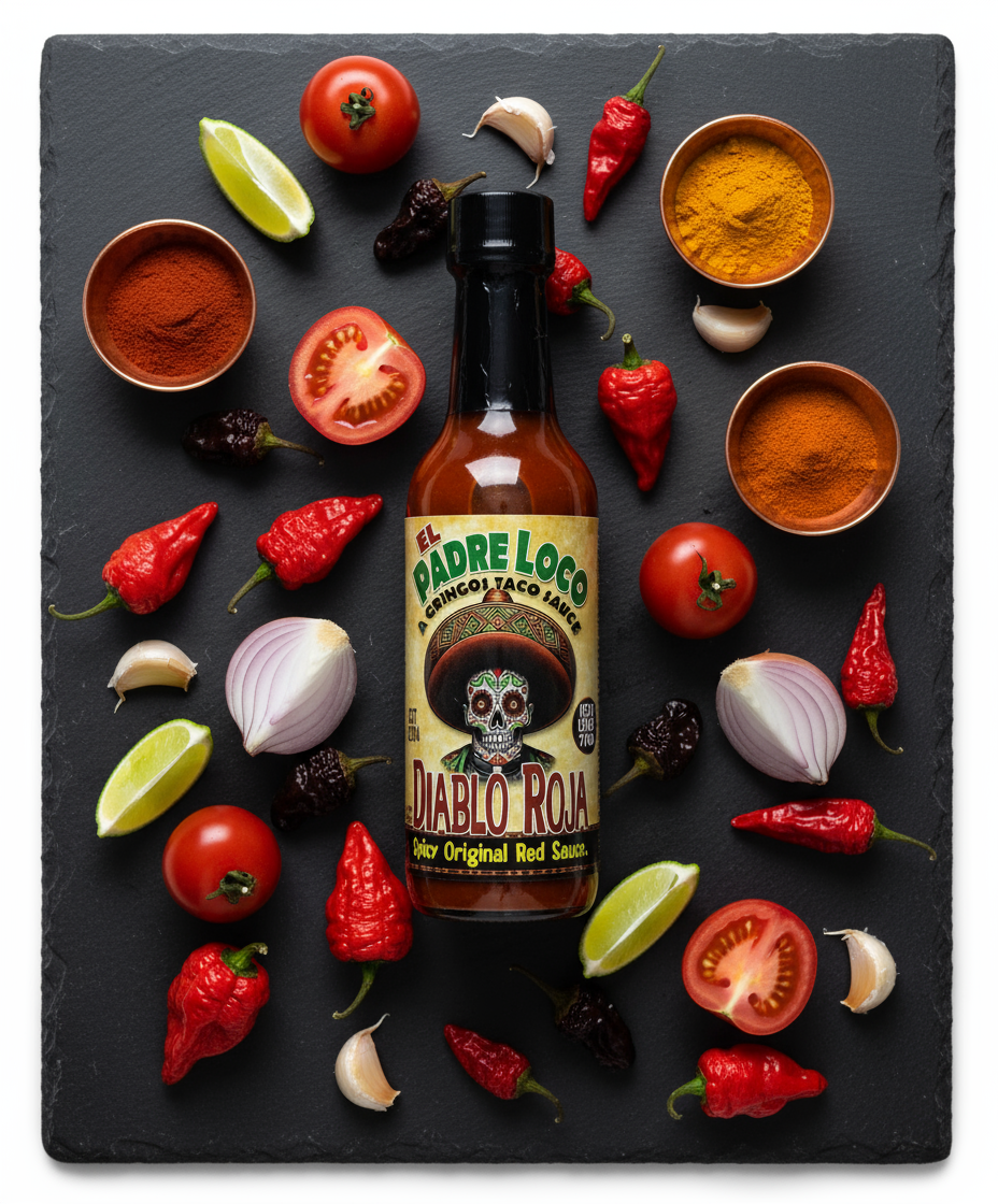 Meet your new fiery obsession: Diablo Roja. Handcrafted with ghost peppers and the freshest ingredients Mother Nature has to offer, this sauce packs pure, bold intensity — no preservatives, no artificial flavors, just unrelenting heat and flavor in every drop. This isn’t your average hot sauce; Diablo Roja delivers a wicked kick that dances on your tongue and leaves you craving more. Drizzle it over tacos, wings, pizza, or anything that could use a devilish dose of heat.